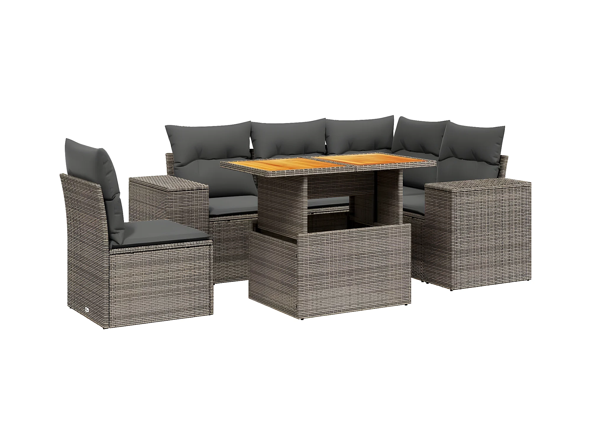 Set de muebles de jardín 6 piezas y cojines ratán sintético gris