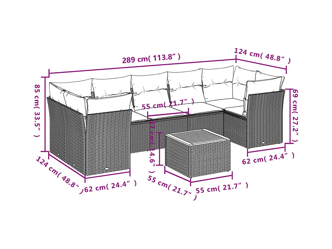 5 pzas Salón de jardín con cojines ratán sintético gris ES70380