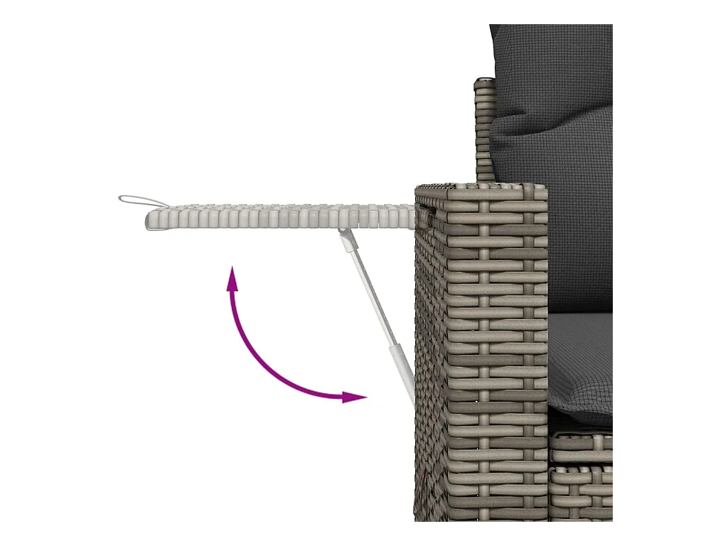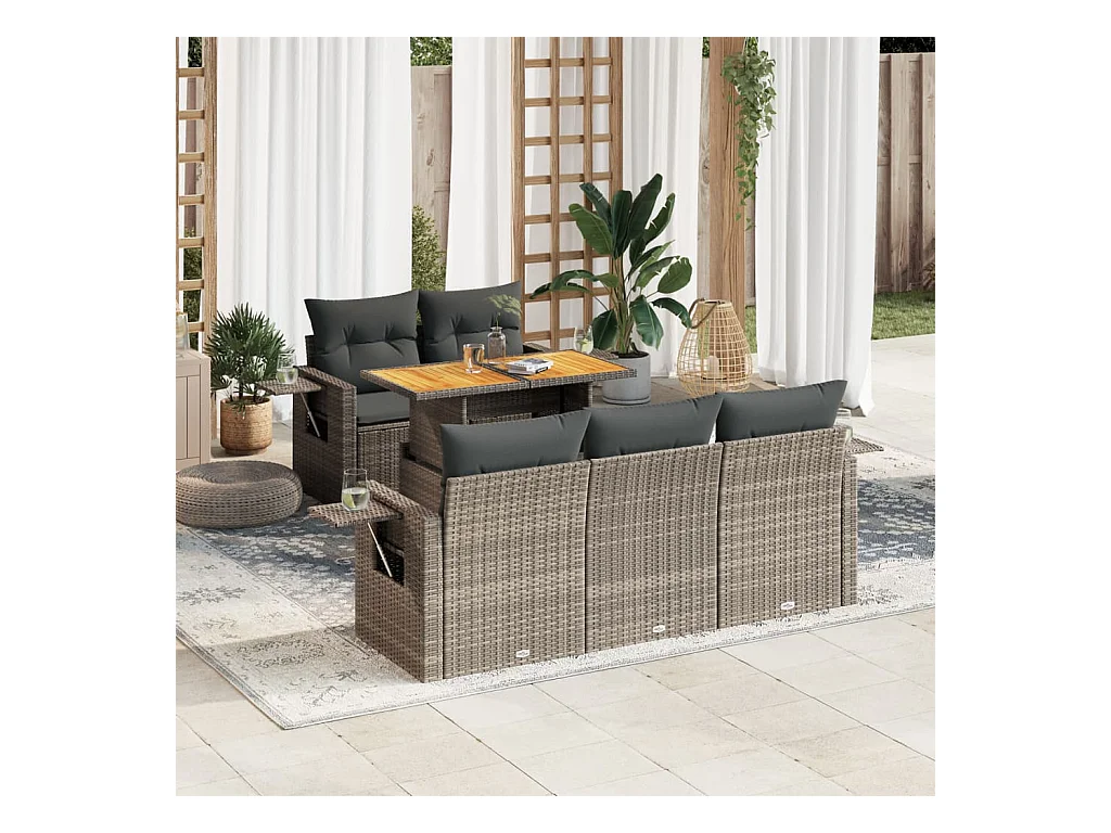 Set de muebles de jardín 6 piezas y cojines ratán sintético gris