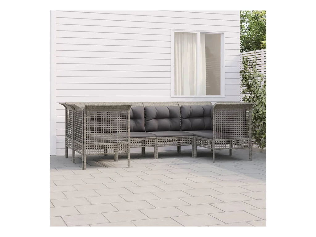 5 pzas Salón de jardín con cojines ratán sintético gris ES55969