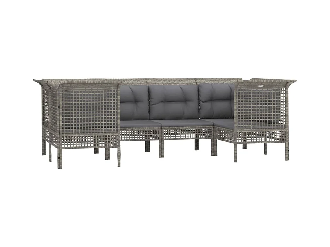 Set de sofás de jardín 6 piezas y cojines ratán sintético gris