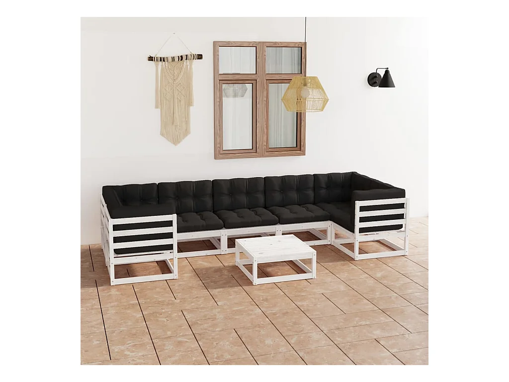 Set de muebles de jardín 8 piezas con cojines madera pino blanco