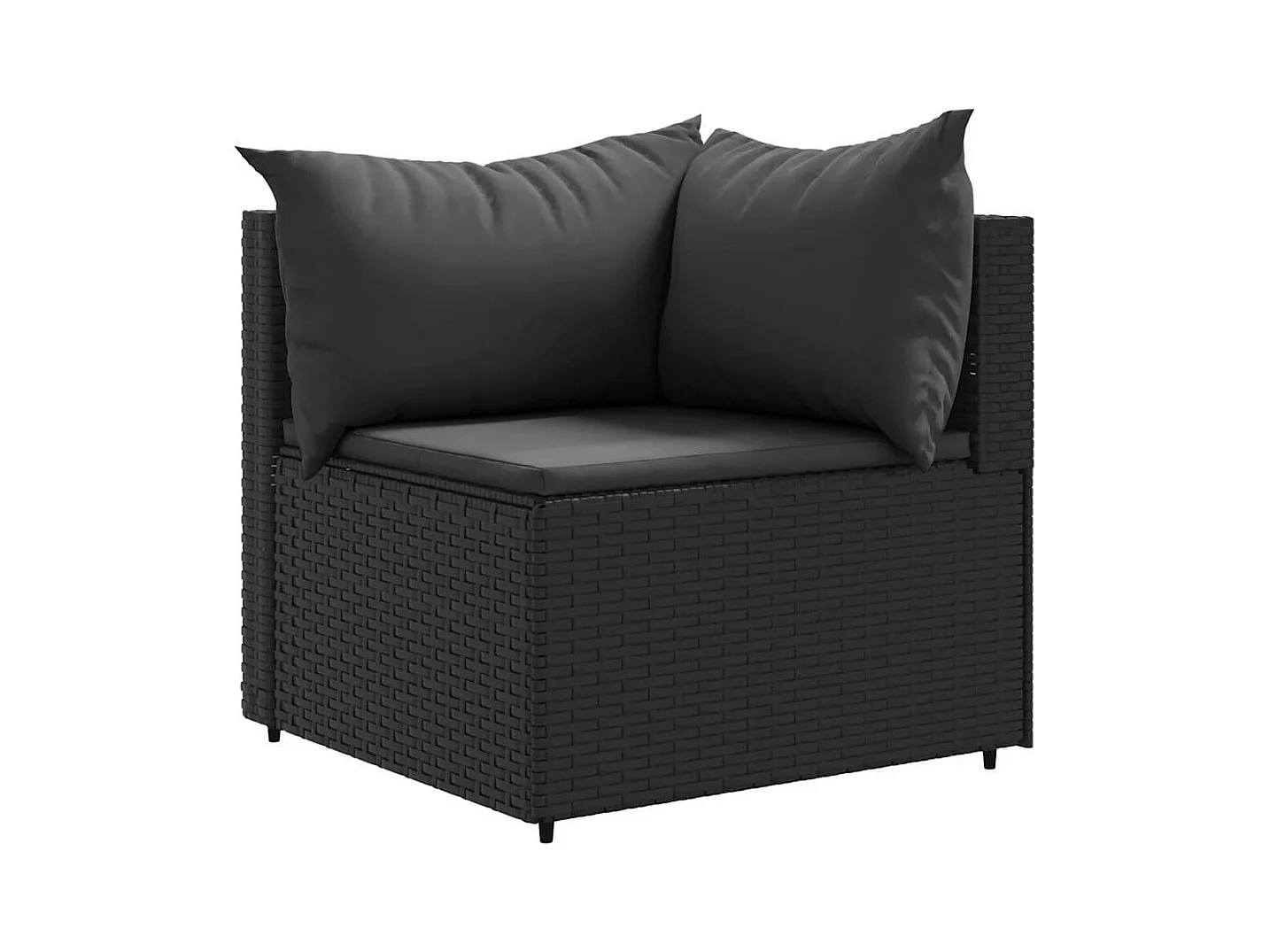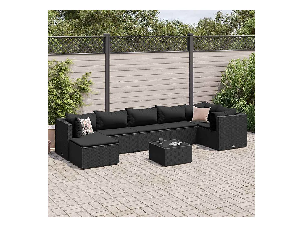 Set de muebles de jardín 8 piezas y cojines ratán sintético negro