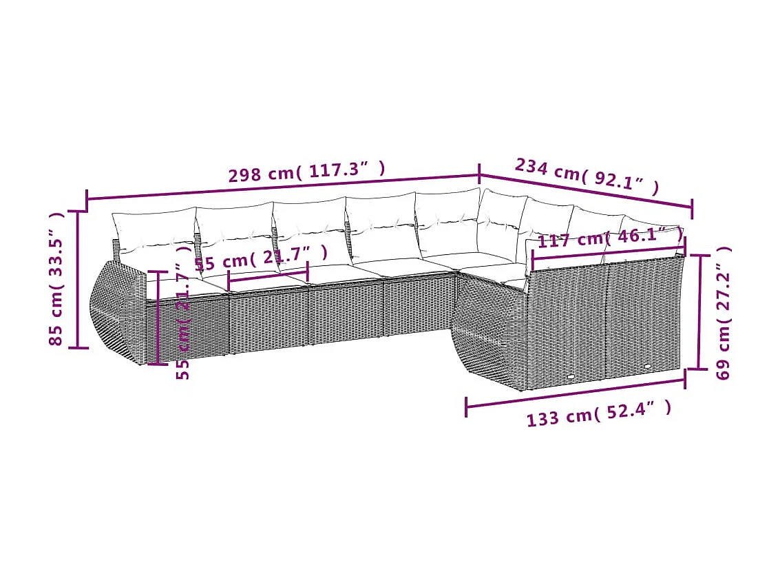 Muebles de jardín de 9 piezas con cojines de resina tejida gris.