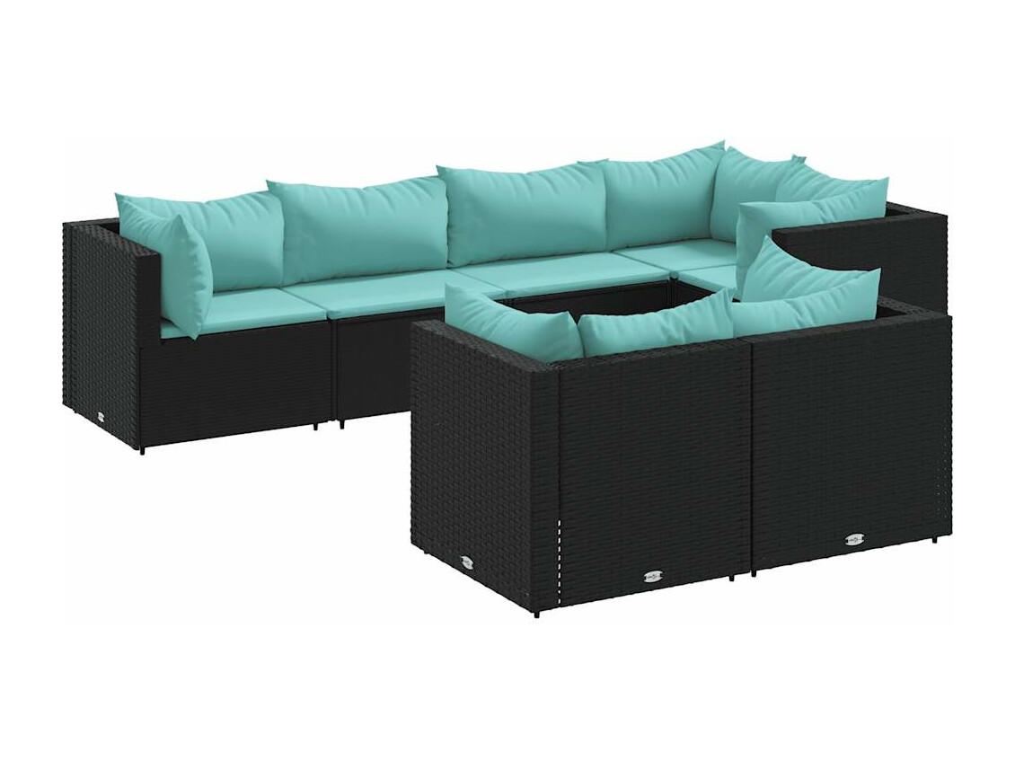 Set de muebles de jardín y cojines 7 piezas ratán sintético negro