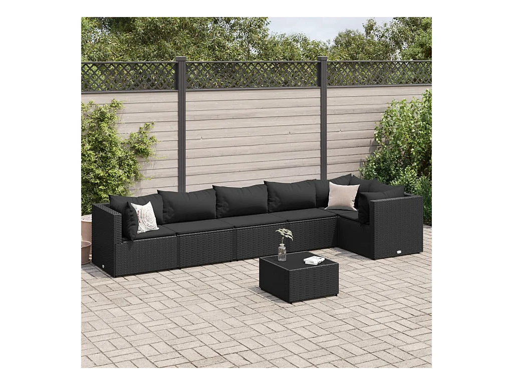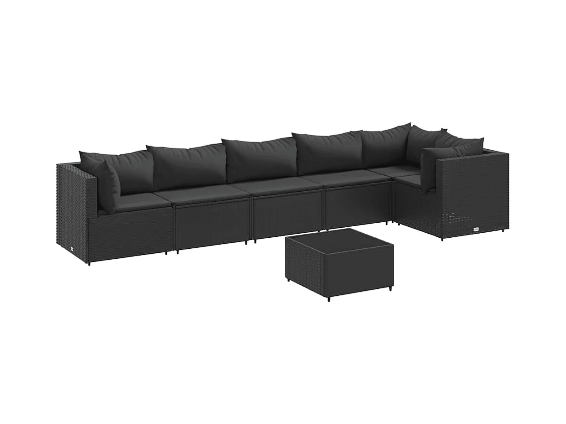 Set de sofás de jardín 6 piezas y cojines ratán sintético negro