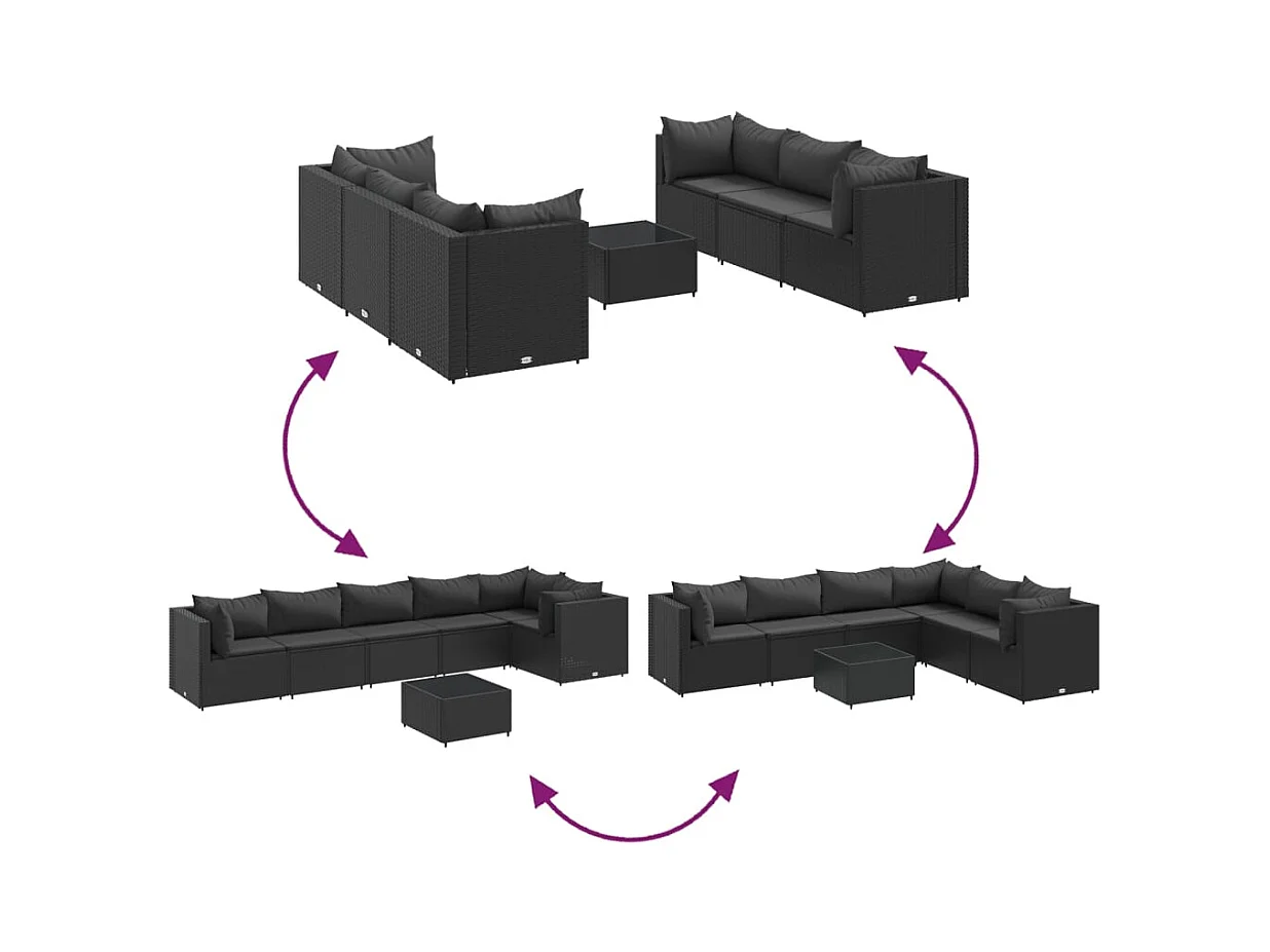 Set de sofás de jardín y cojines 10 pzas ratán sintético negro