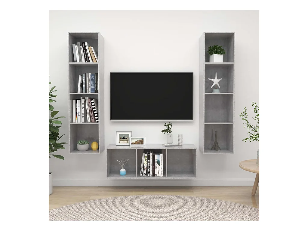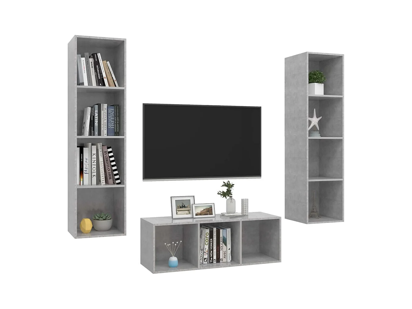 Juego de mueble para TV | Gabinete de TV | Mueble de salón de 4 piezas aglomerado gris hormigón