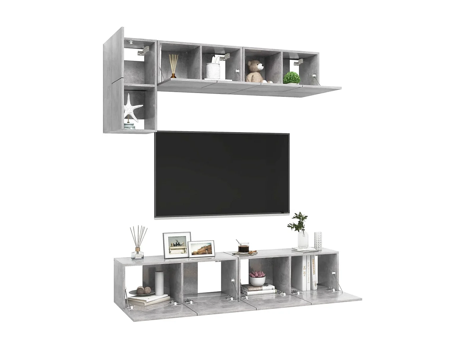 Set de Muebles de salón | Gabinetes de TV | Muebles de TV 6 pzas madera ingeniería gris hormigón