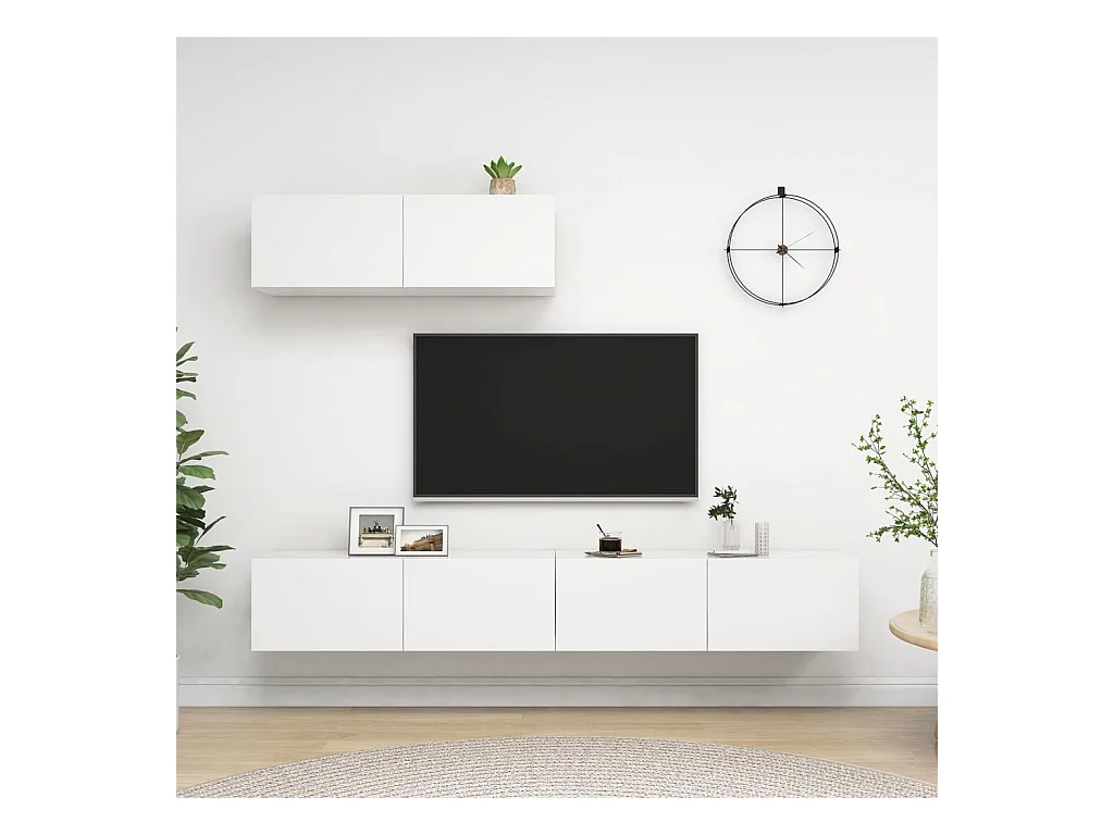 Set de muebles de salón TV | Gabinetes de TV | Muebles de TV 4 piezas madera de ingeniería blanco