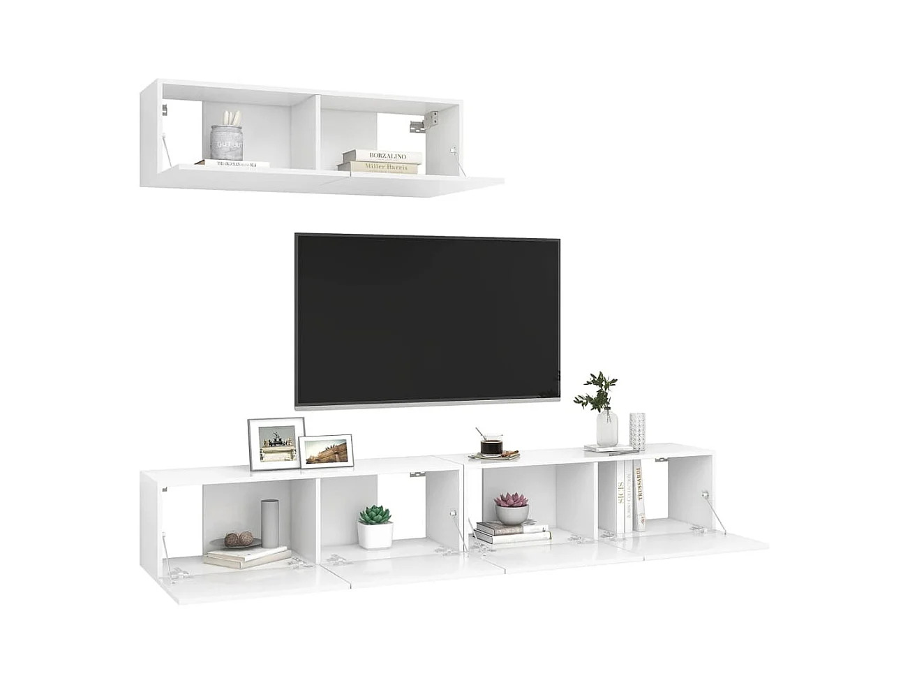 Muebles de TV | Gabinetes de TV | Muebles de salón 4 uds madera de ingeniería blanco 100x30x30 cm