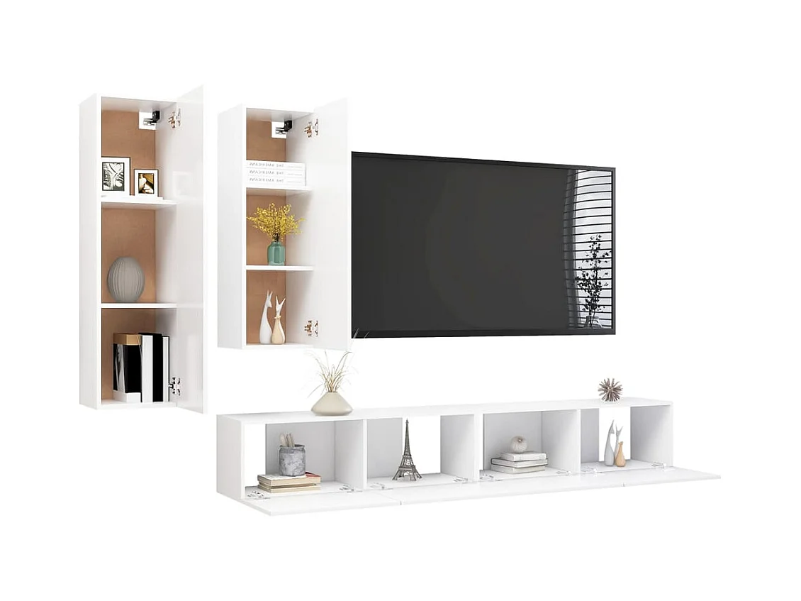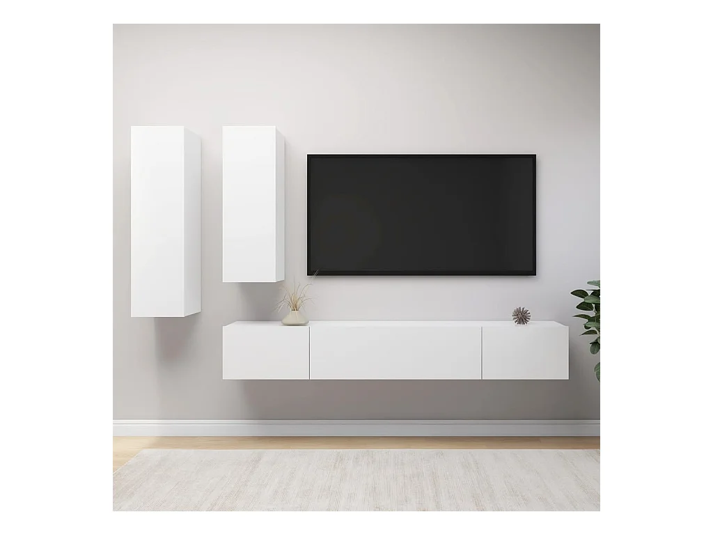 Set de muebles para TV | Gabinetes de TV | Muebles de salón 4 piezas madera contrachapada blanco