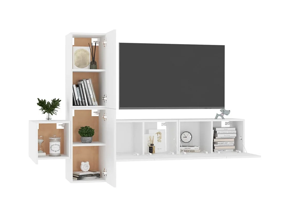 Juego de mueble para TV | Gabinete de TV | Mueble de salón de 4 piezas madera de ingeniería blanco