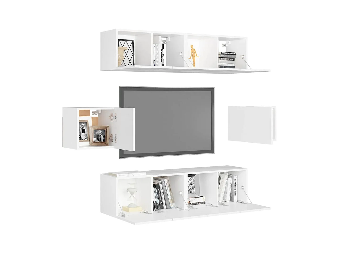 Set de muebles para TV | Gabinetes de TV | Muebles de salón 6 piezas madera contrachapada blanco