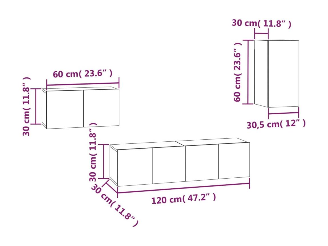 Conjunto de mueble de TV 4 pcs Madera vieja 30.5 x 30 x 90 cm