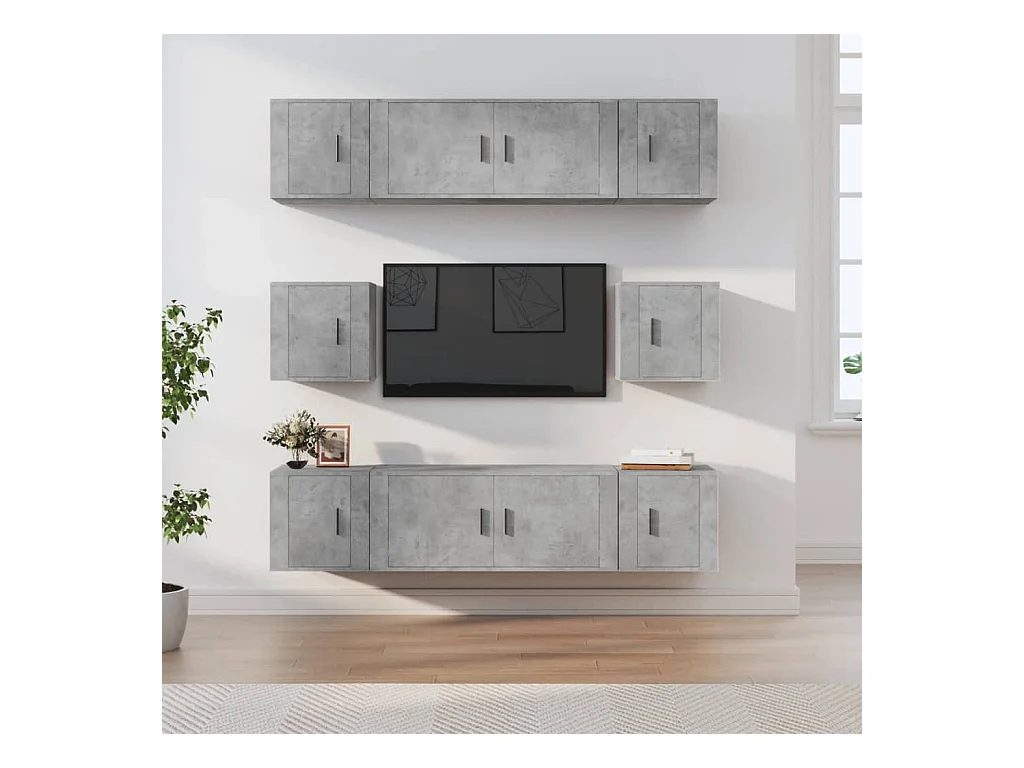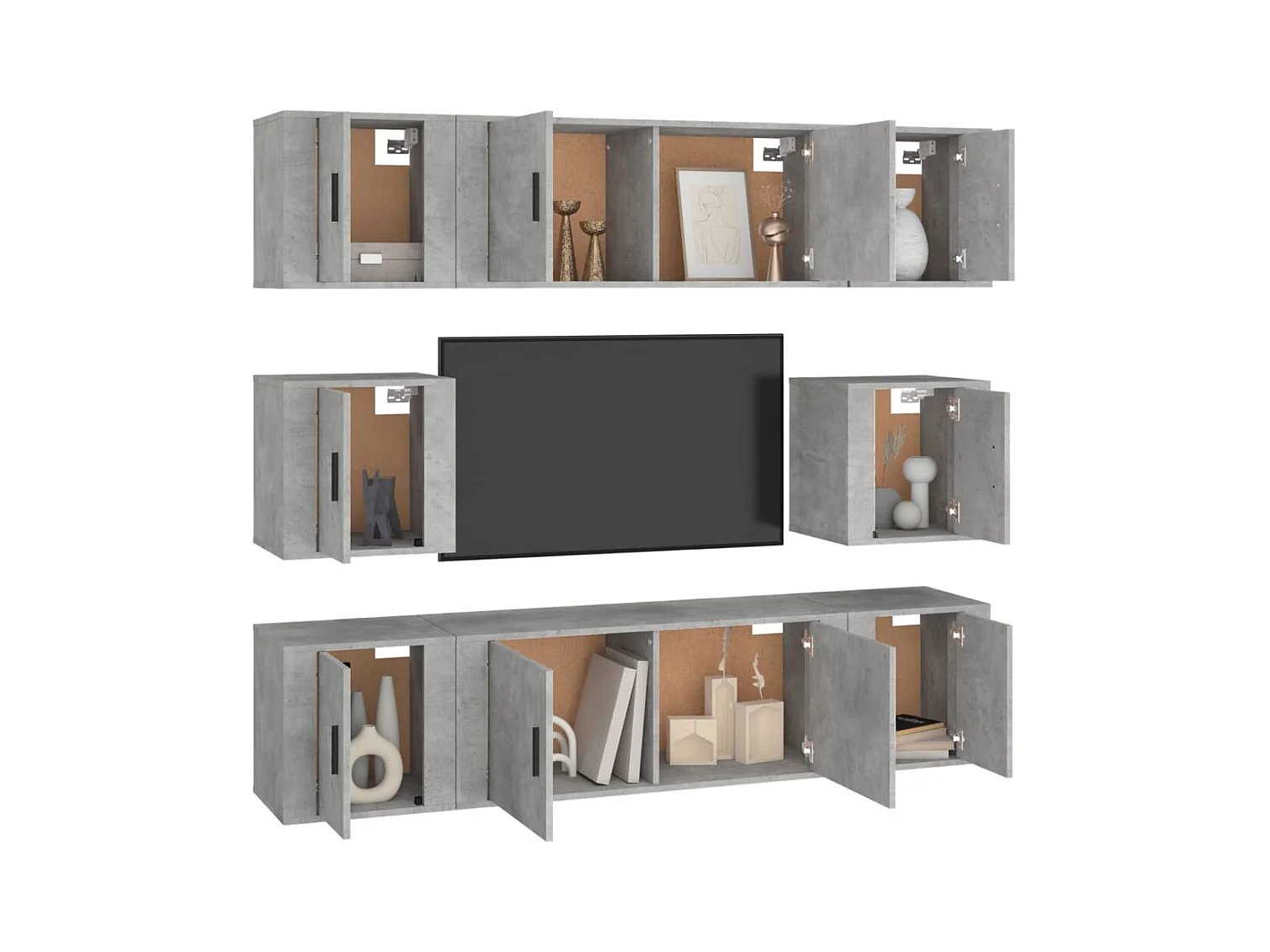 Set de muebles de TV 7 pzas madera contrachapada gris hormigón ES83179
