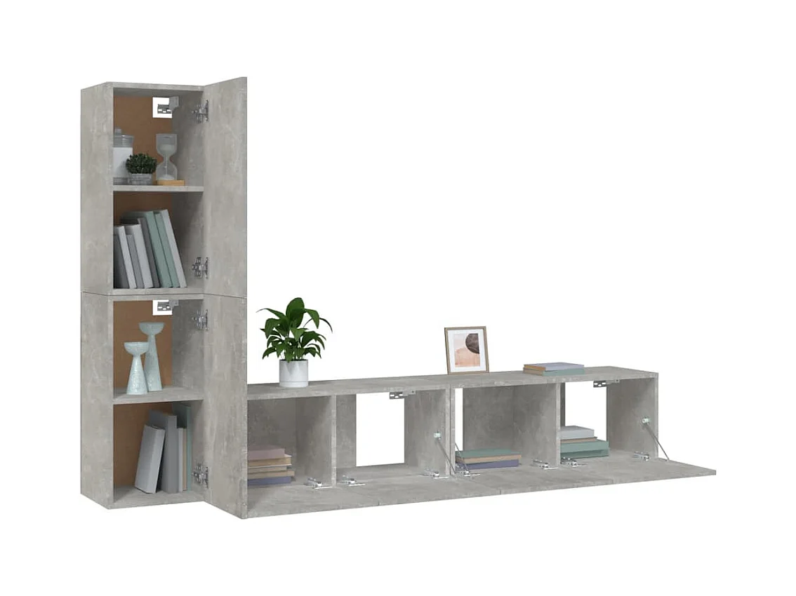 Set de muebles de TV | Gabinetes de TV | Muebles de salón 4 pzas madera contrachapada gris hormigón