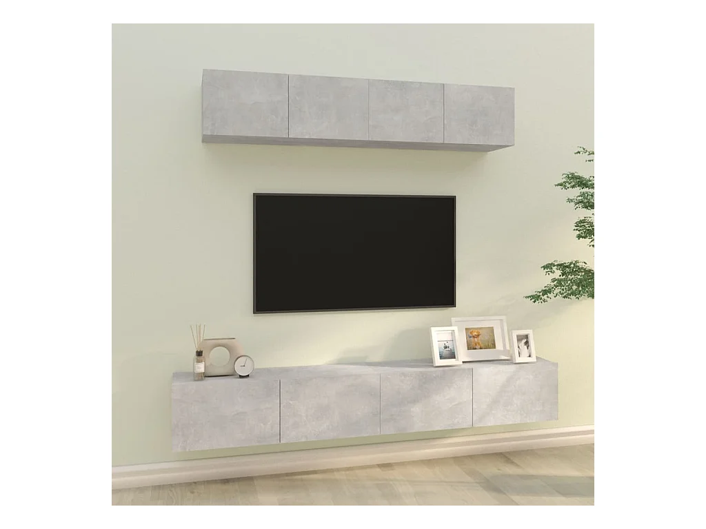 Set de muebles de TV | Gabinetes de TV | Muebles de salón 4 pzas madera contrachapada gris hormigón
