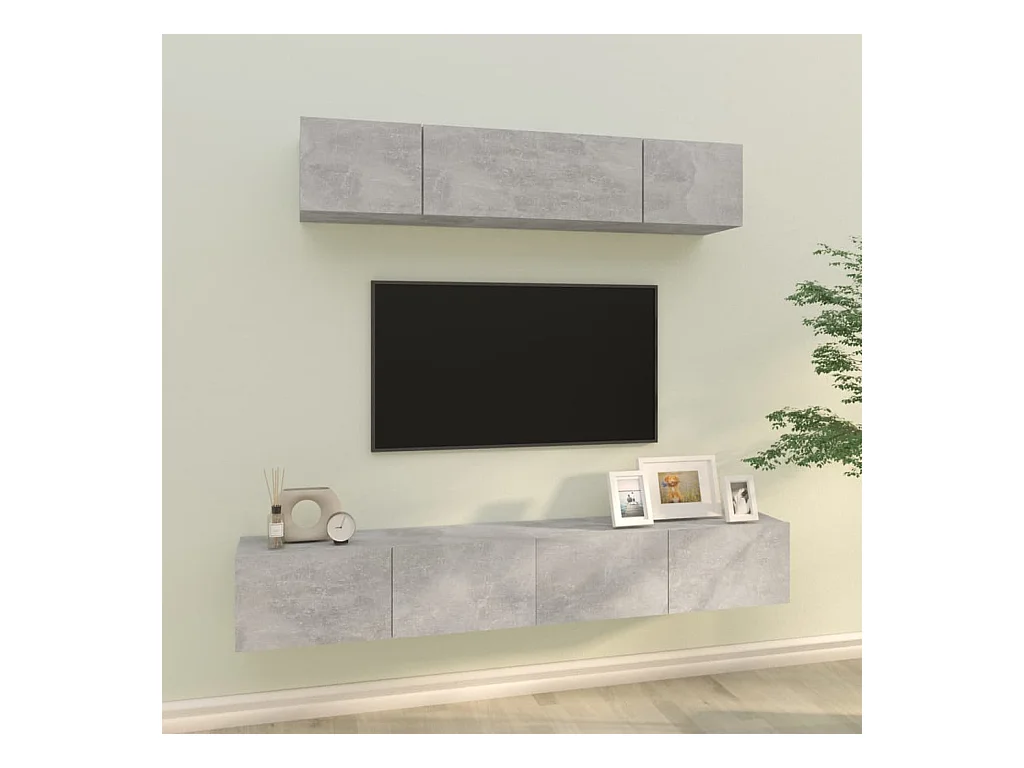 Set de muebles de TV | Gabinetes de TV | Muebles de salón 4 pzas madera contrachapada gris hormigón