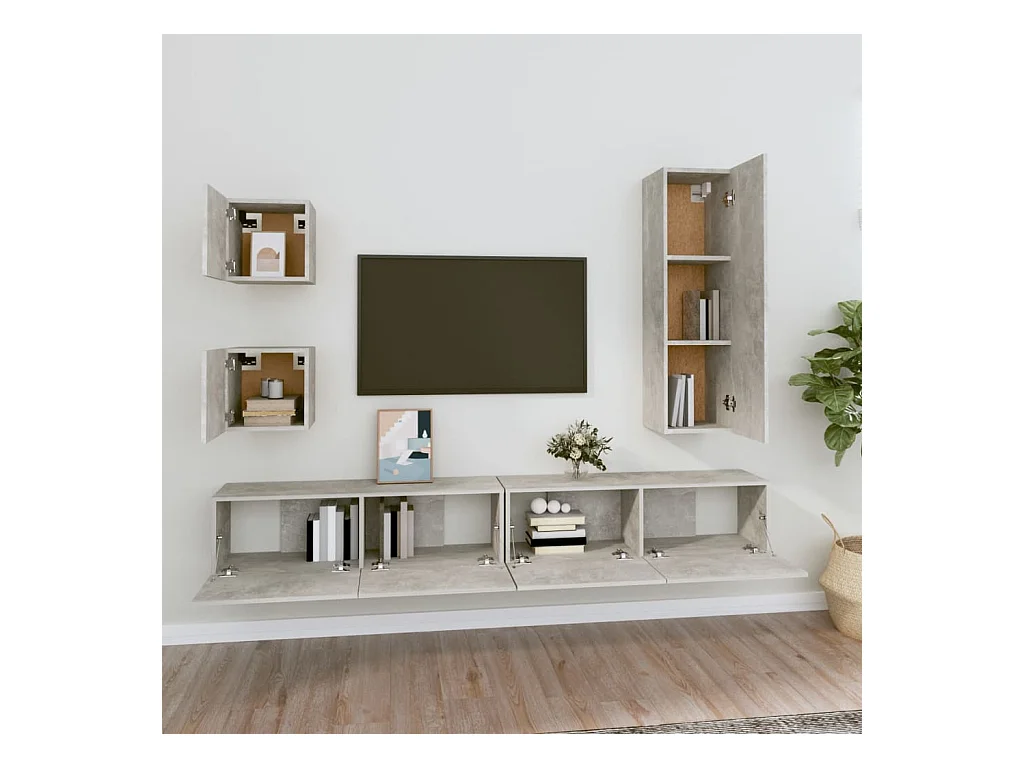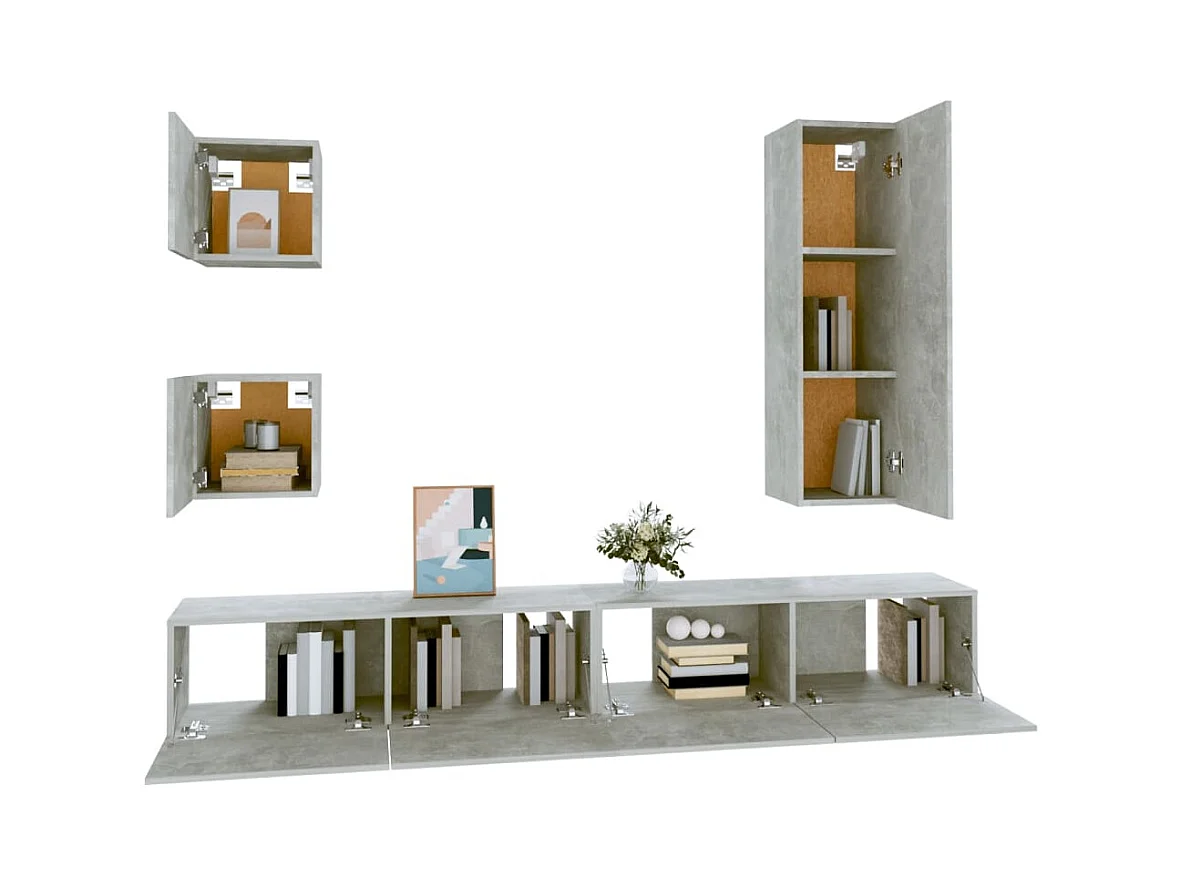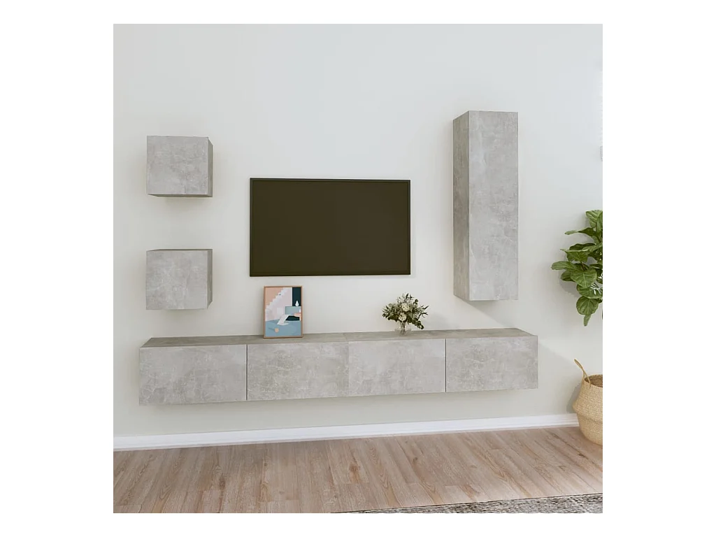 Set de Muebles de salón | Gabinetes de TV | Muebles de TV 5 pzas madera ingeniería gris hormigón