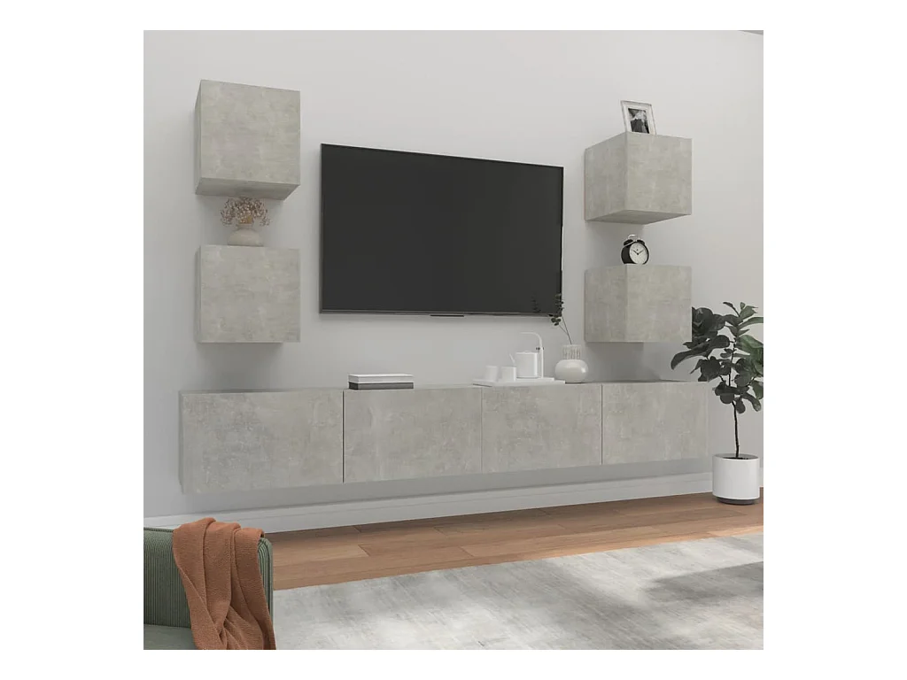 Set de muebles de TV | Gabinetes de TV | Muebles de salón 8 pzas madera contrachapada gris hormigón