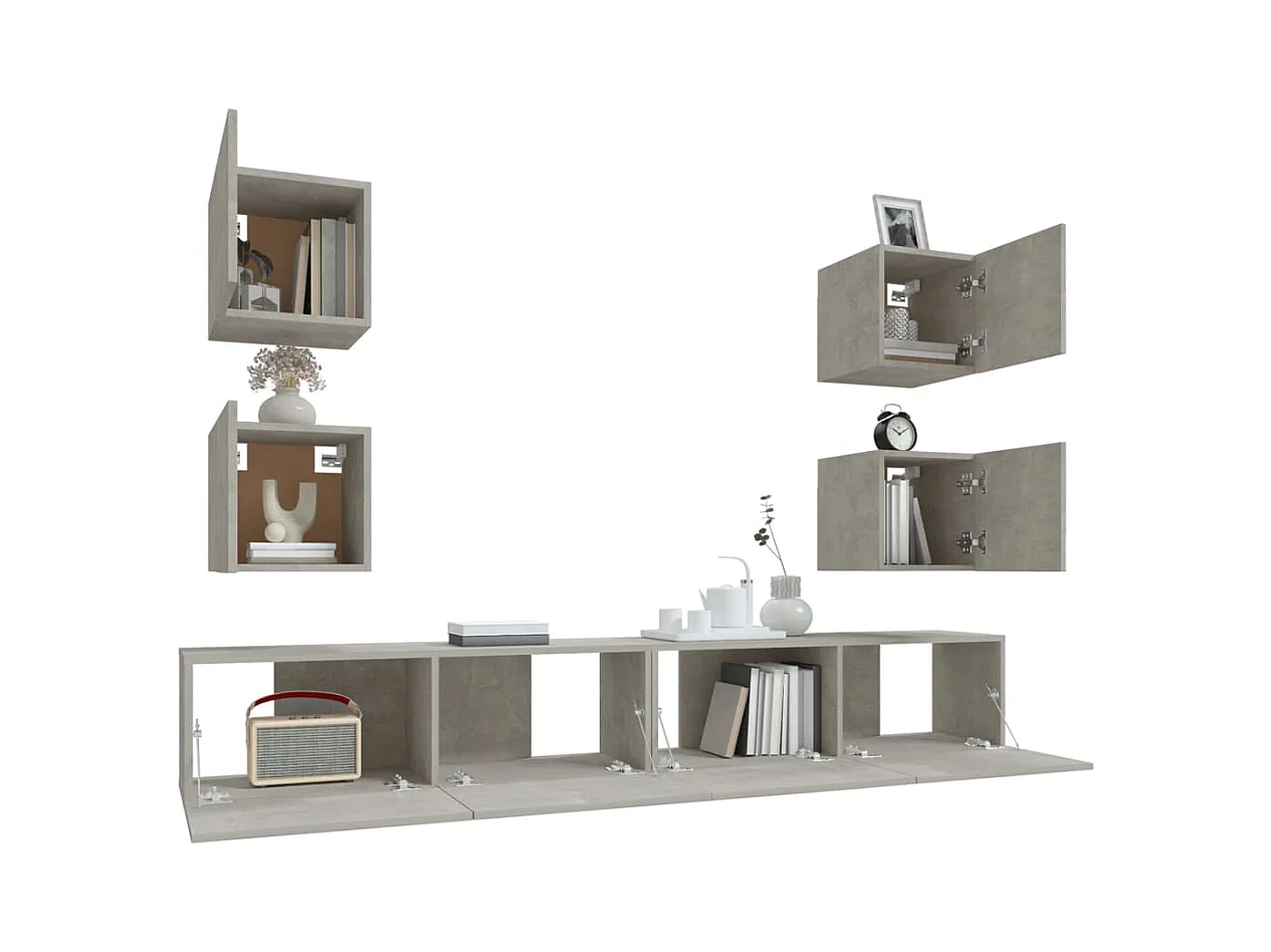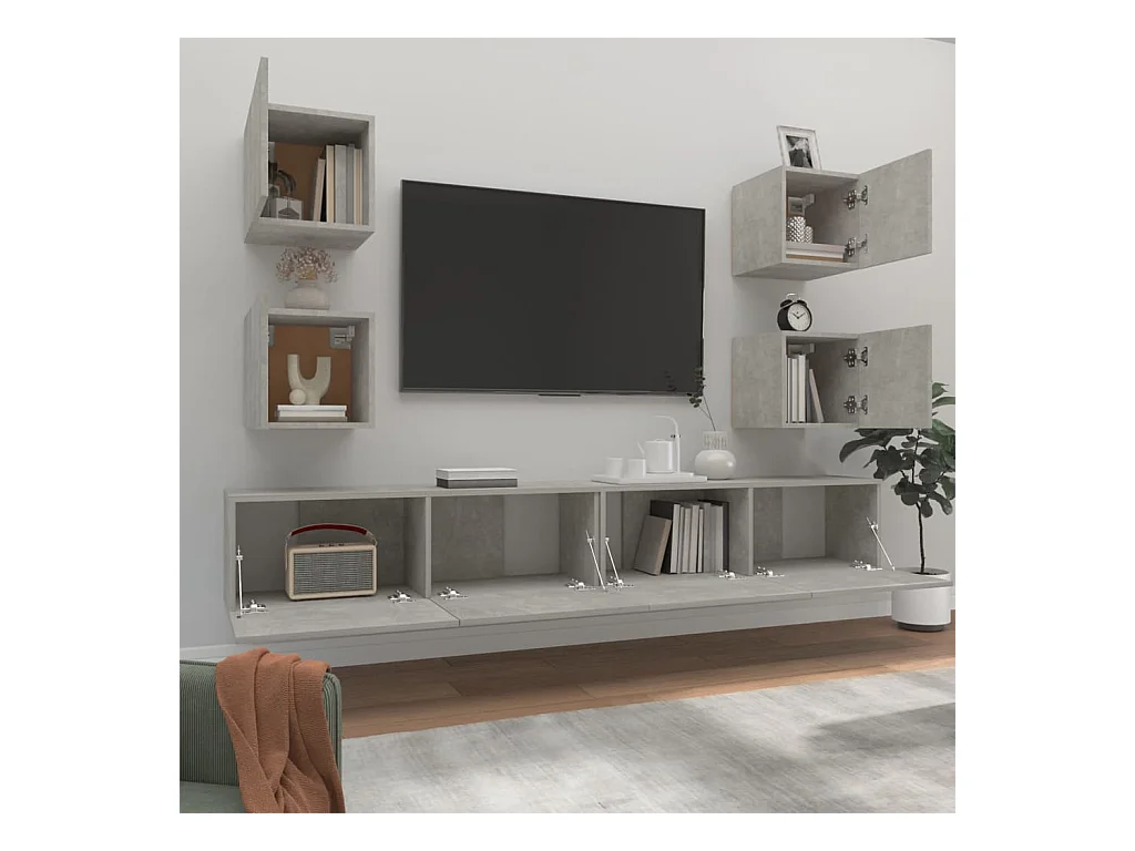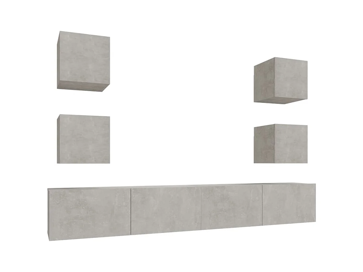 Set de muebles de TV | Gabinetes de TV | Muebles de salón 6 pzas madera contrachapada gris hormigón