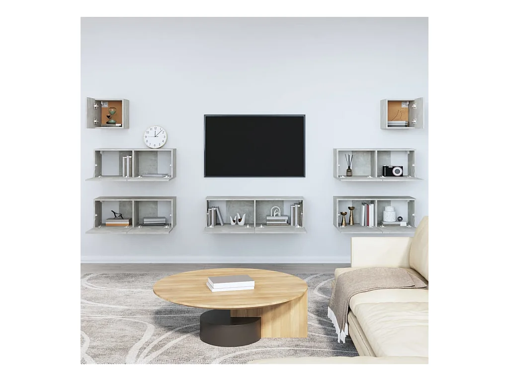 Set de muebles de TV | Gabinetes de TV | Muebles de salón 6 pzas madera contrachapada gris hormigón