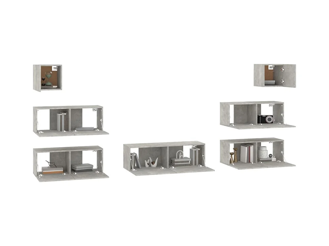 Set de muebles de TV | Gabinetes de TV | Muebles de salón 7 pzas madera contrachapada gris hormigón