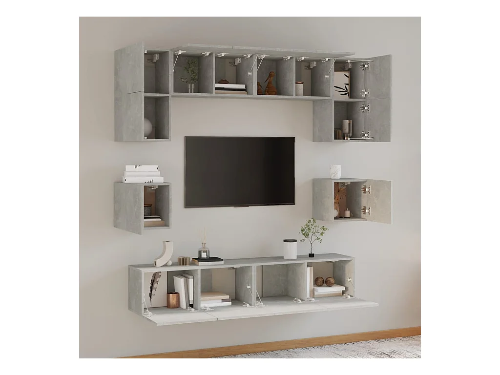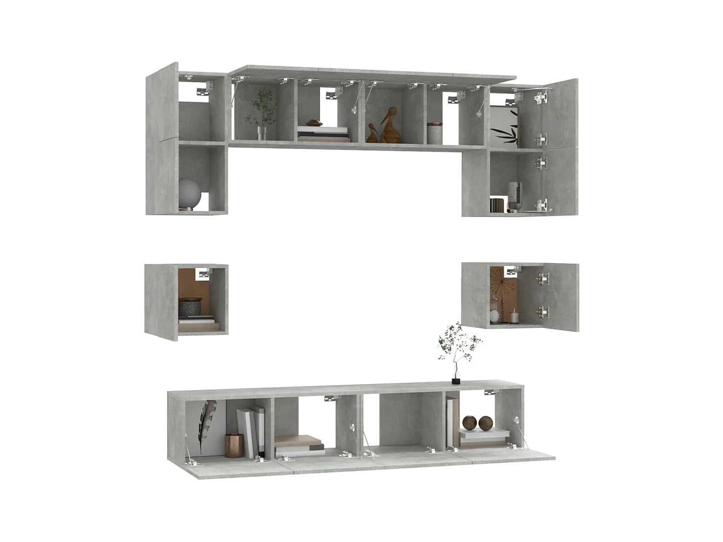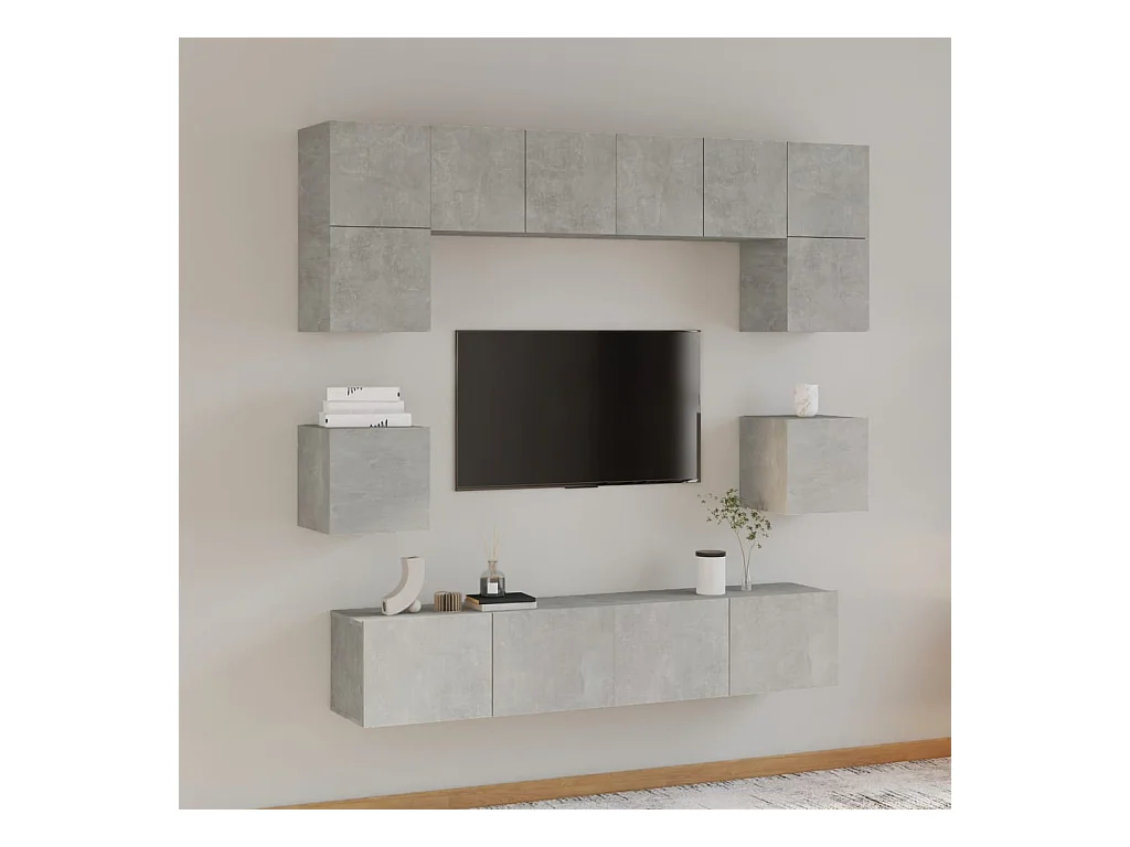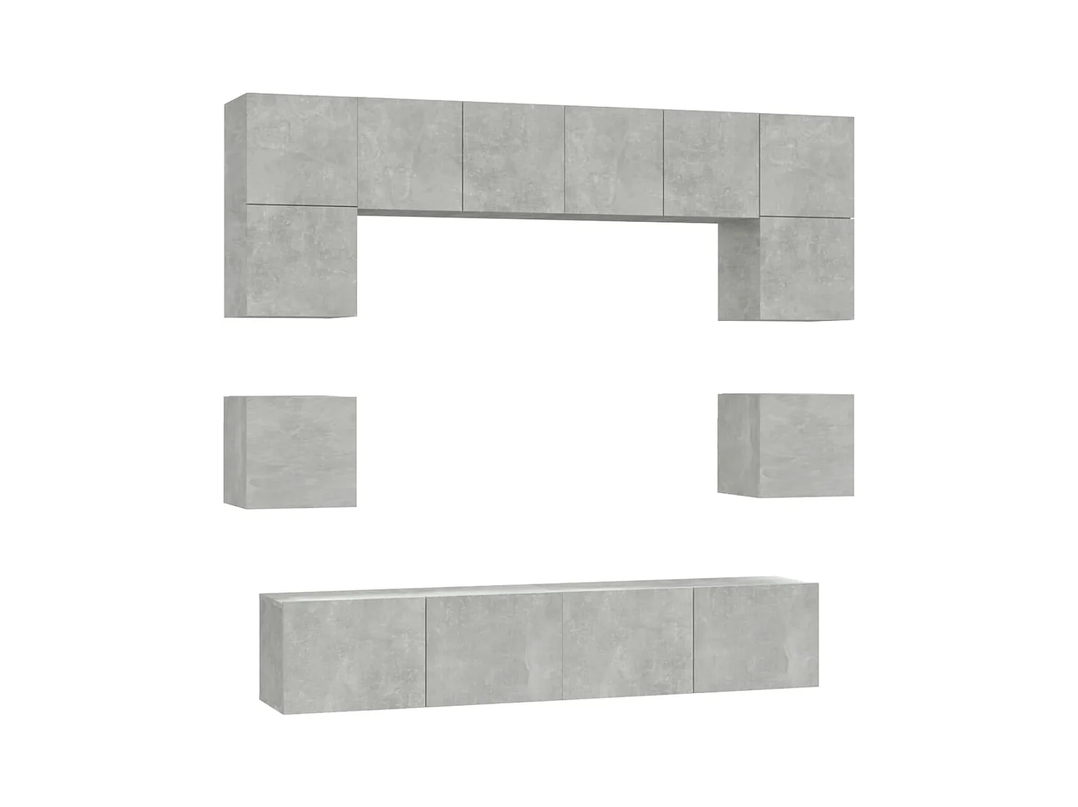Set de muebles de TV | Gabinetes de TV | Muebles de salón 8 pzas madera contrachapada gris hormigón