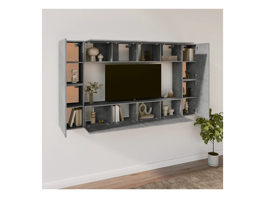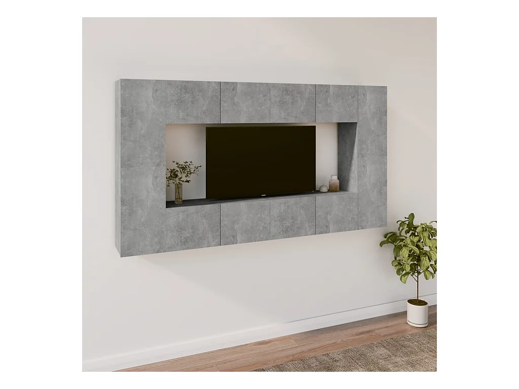 Set de muebles de TV | Gabinetes de TV | Muebles de salón 8 pzas madera contrachapada gris hormigón