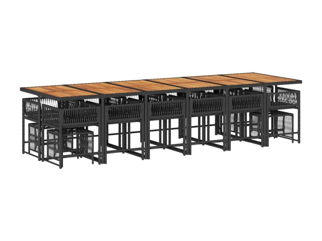 Set de muebles jardín 17 piezas con cojines ratán sintético negro