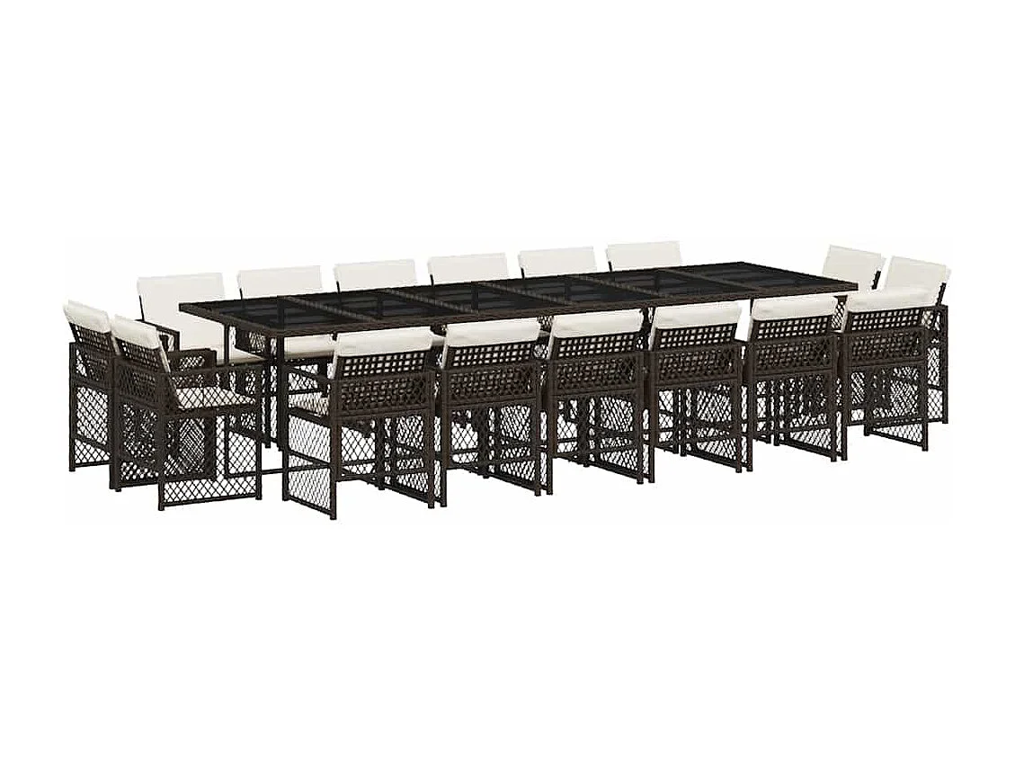 Set de muebles jardín 17 piezas y cojines ratán sintético marrón
