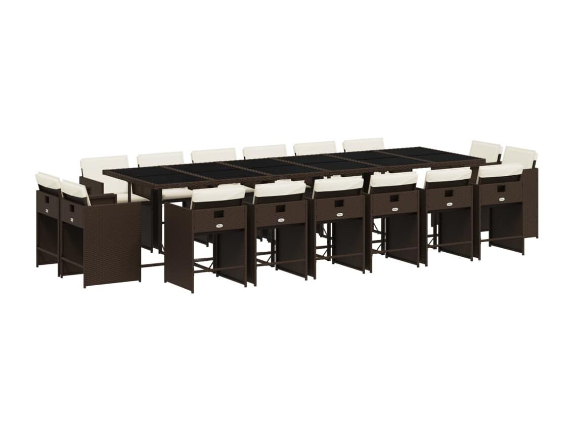 Set de muebles jardín 17 piezas y cojines ratán sintético marrón
