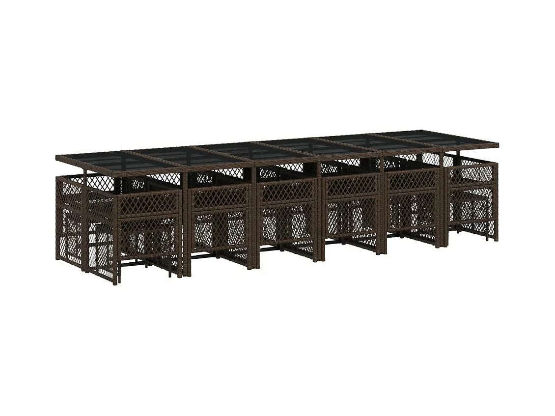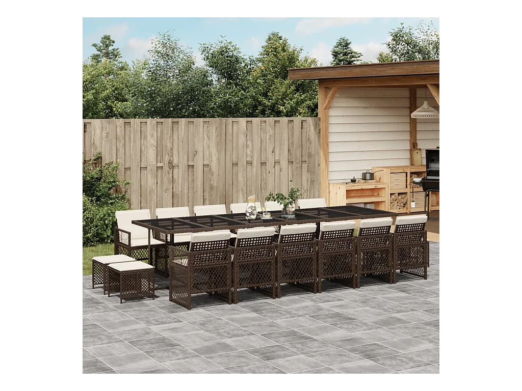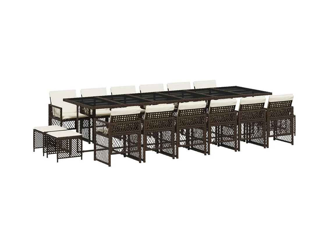 Set de muebles jardín 17 piezas y cojines ratán sintético marrón