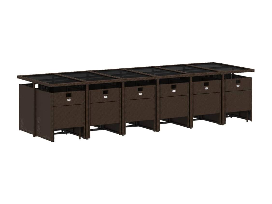 Set de muebles jardín 17 piezas y cojines ratán sintético marrón