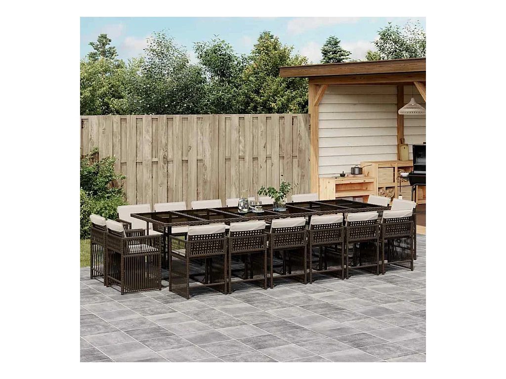 Set de muebles jardín 17 piezas y cojines ratán sintético marrón