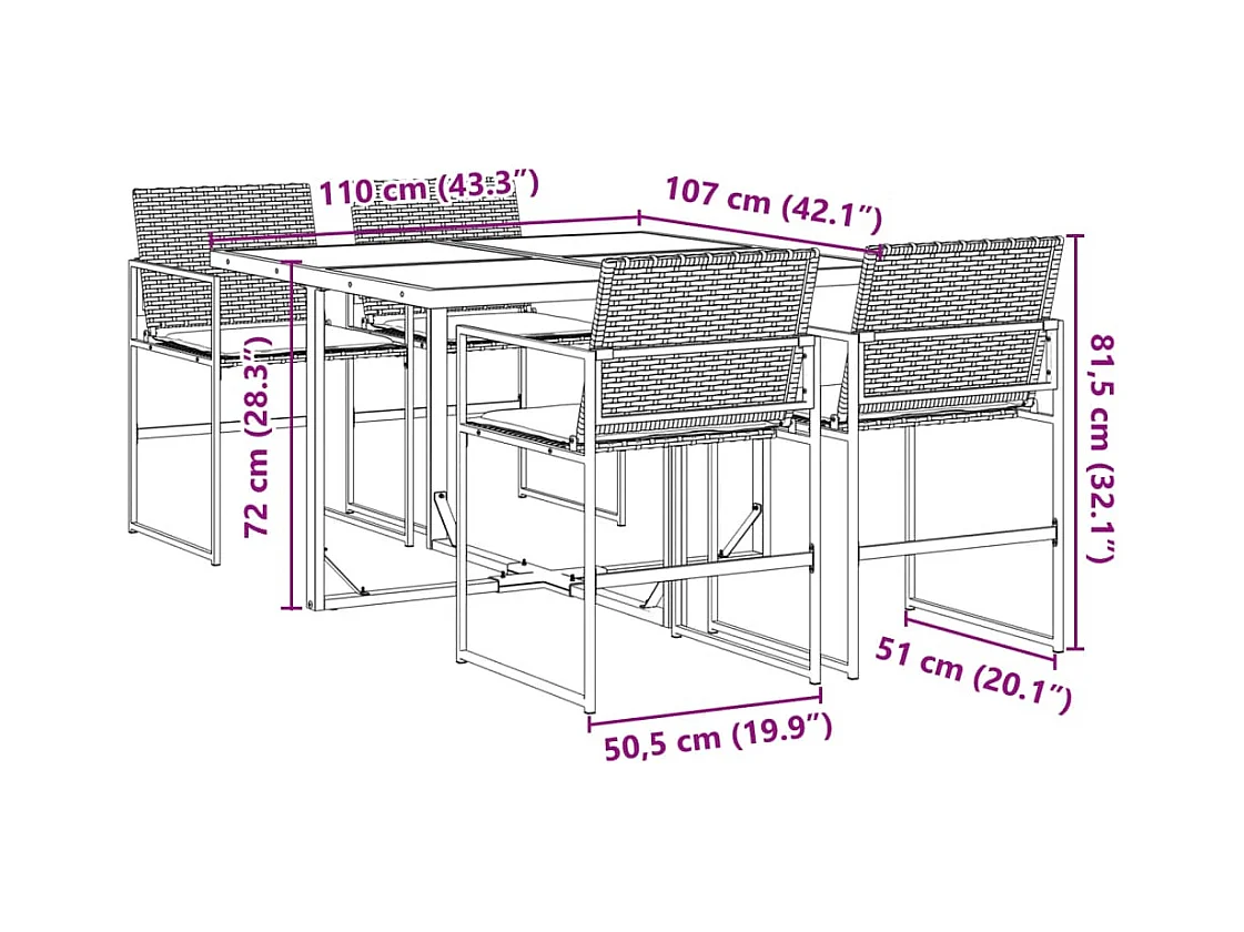 Comedor de jardín 5 pzas ratán sintético y acero negro YOE57424
