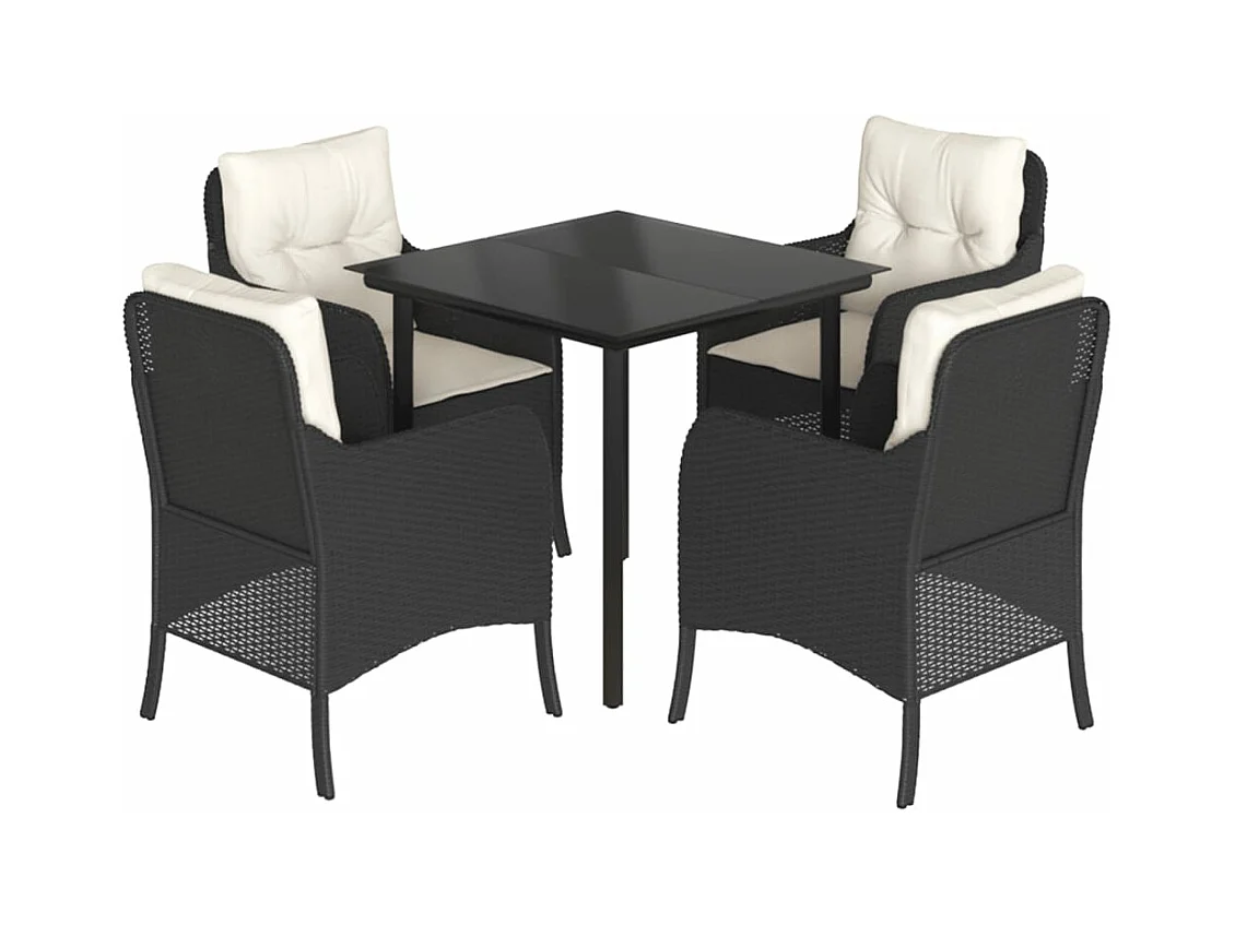 Set de muebles jardín 5 pzas con cojines ratán sintético negro