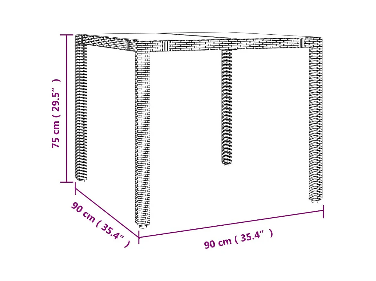 Set comedor jardín 3 pzas cojines ratán sintético vidrio negro