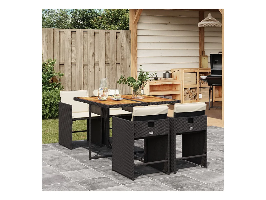 Set de muebles jardín 5 pzas con cojines ratán sintético negro