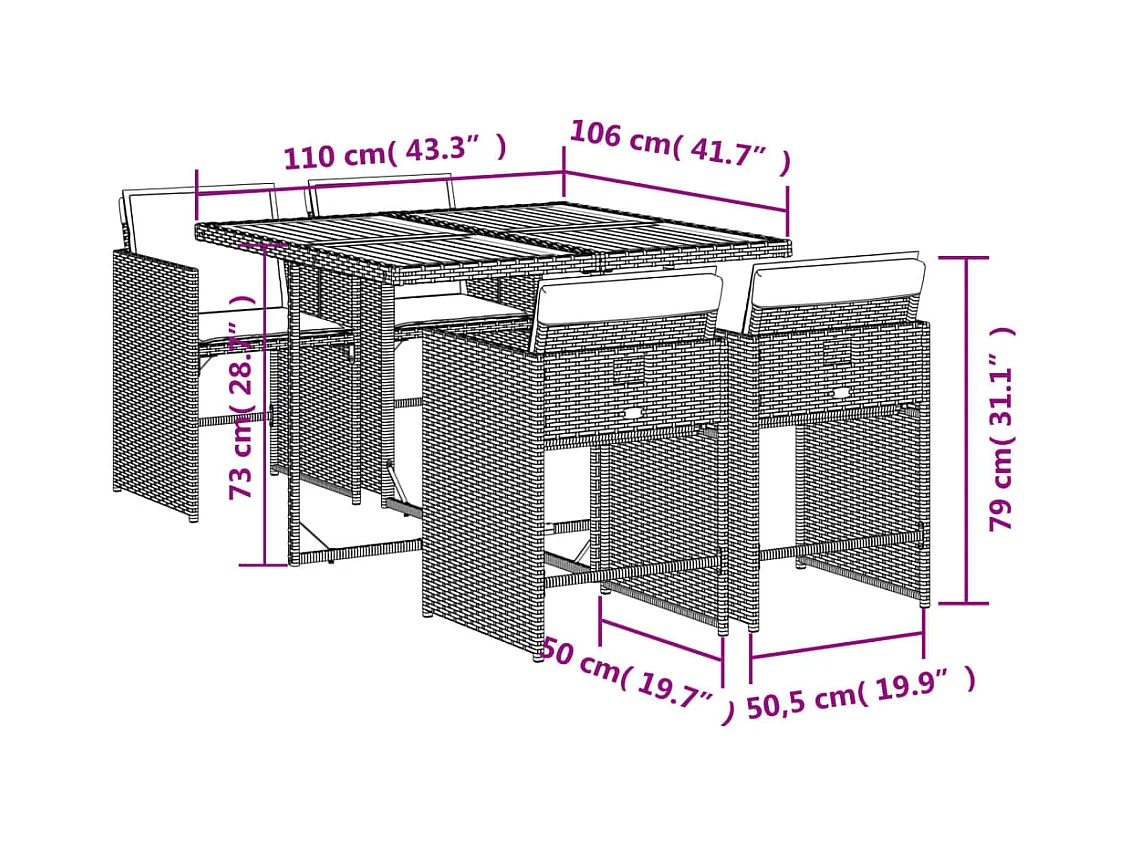 Conjunto de mesa y sillas para jardín 6 plazas