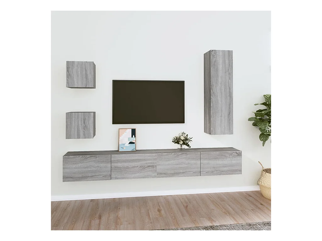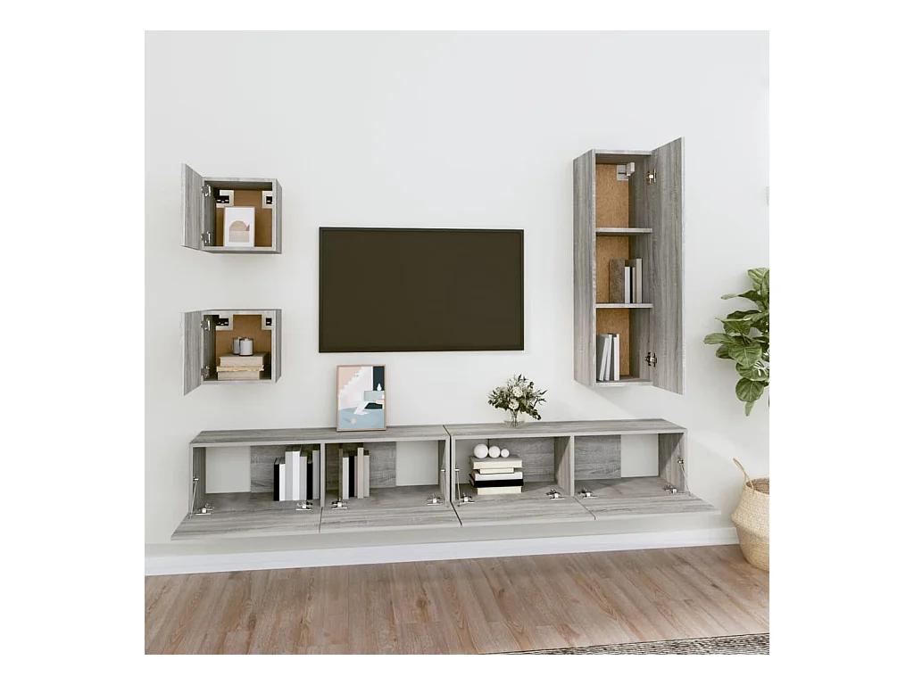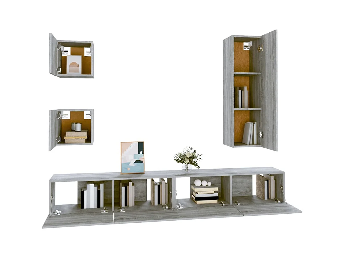 Set de muebles para TV 5 pzas madera contrachapada gris Sonoma ES157081