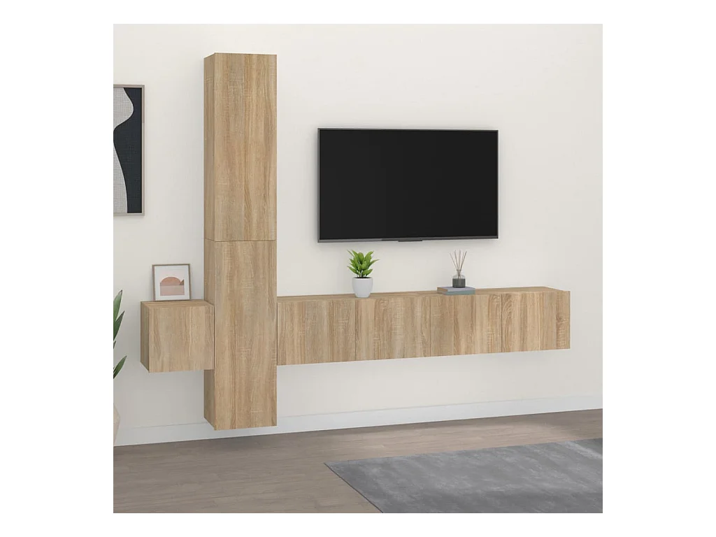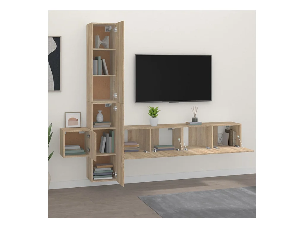 Set de muebles para TV 4 pzas madera contrachapada roble Sonoma ES46399