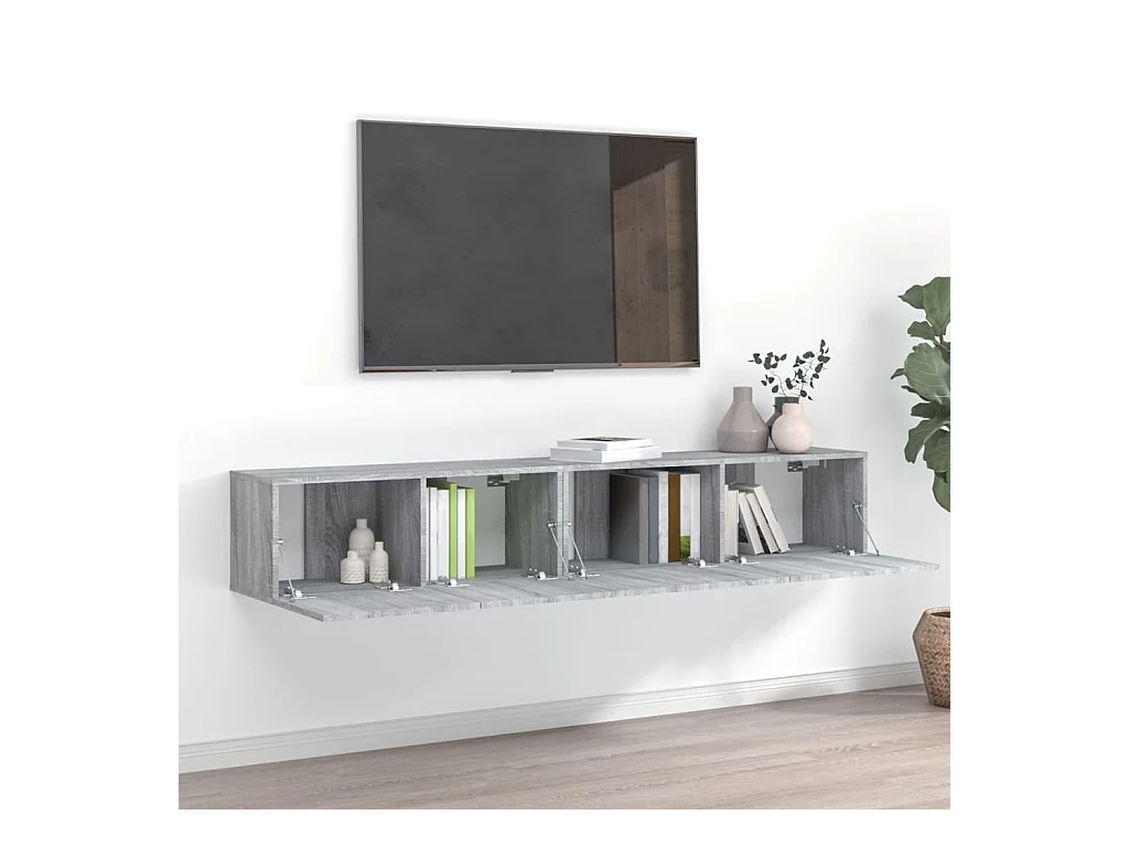 Muebles de pared para TV | Gabinetes de TV | Muebles de salón 2 uds madera gris hormigón 80x30x30 cm