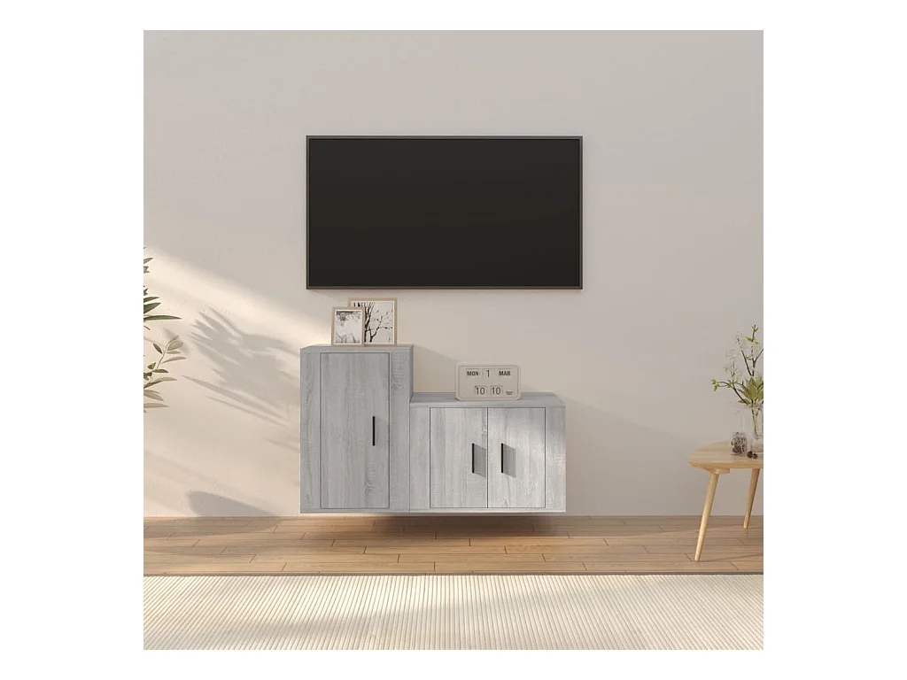 muebles para TV | Gabinetes de TV | Muebles de salón de pared 2 uds gris Sonoma 40x34,5x60 cm