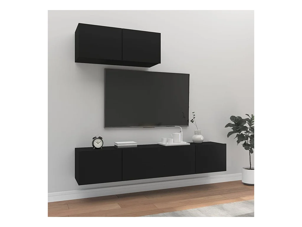 Set de muebles para TV | Gabinetes de TV | Muebles de salón 3 piezas madera contrachapada negro