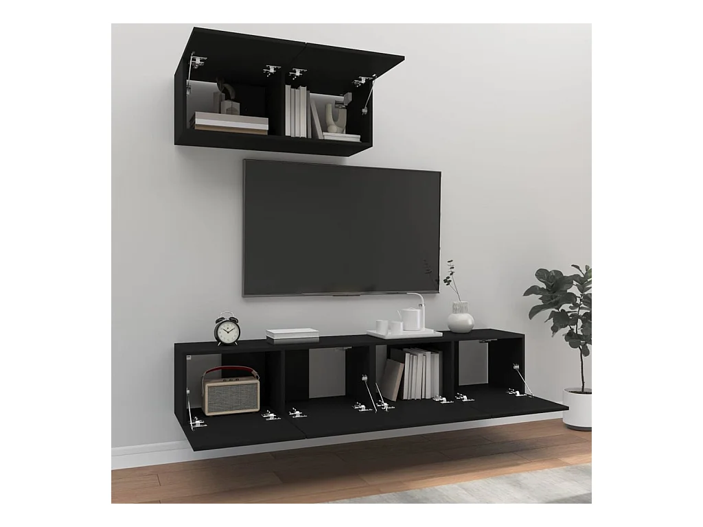Set muebles de TV | Gabinetes de TV | Muebles de salón 4 uds madera contrachapada negro 80x30x30 cm