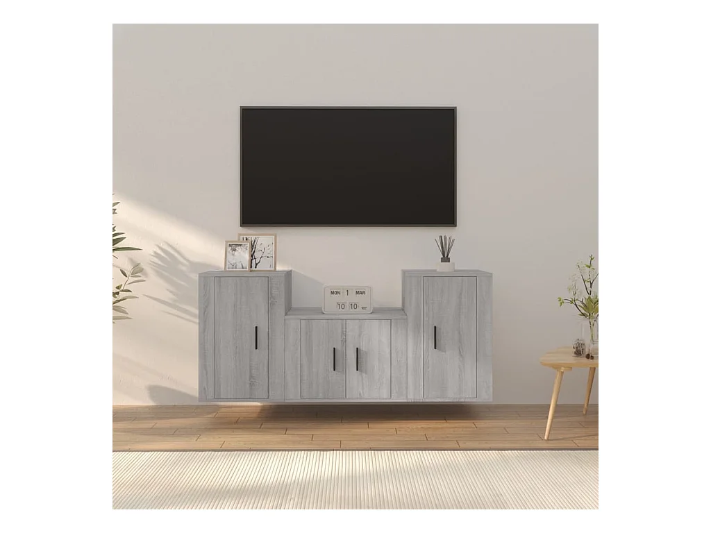 Set de muebles para TV | Gabinetes de TV | Muebles de salón 4 pzas madera contrachapada gris Sonoma