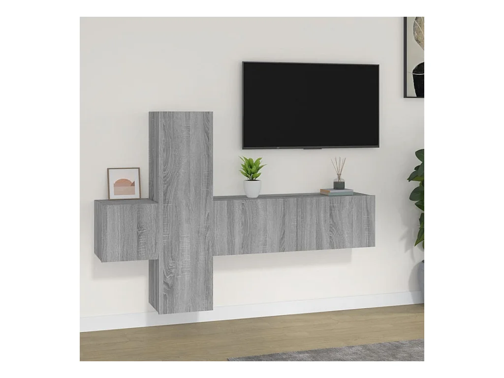 Set de muebles de TV | Gabinetes de TV | Muebles de salón 6 pzas madera contrachapada gris hormigón