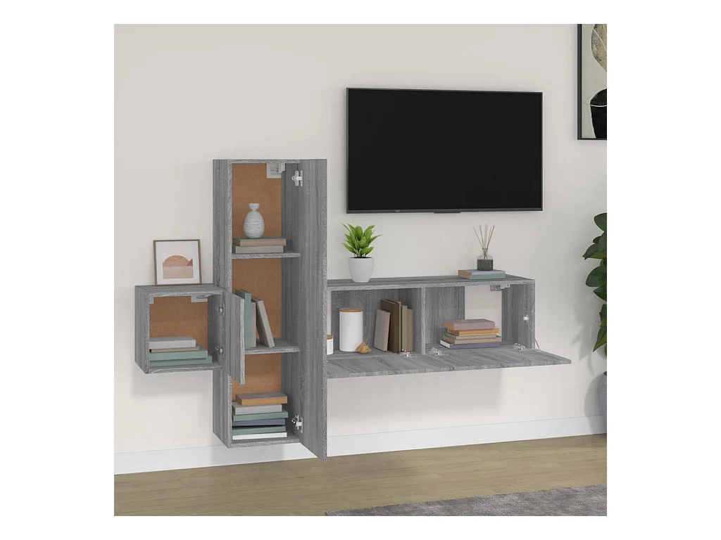 Set de muebles de TV | Gabinetes de TV | Muebles de salón 4 pzas madera contrachapada gris hormigón
